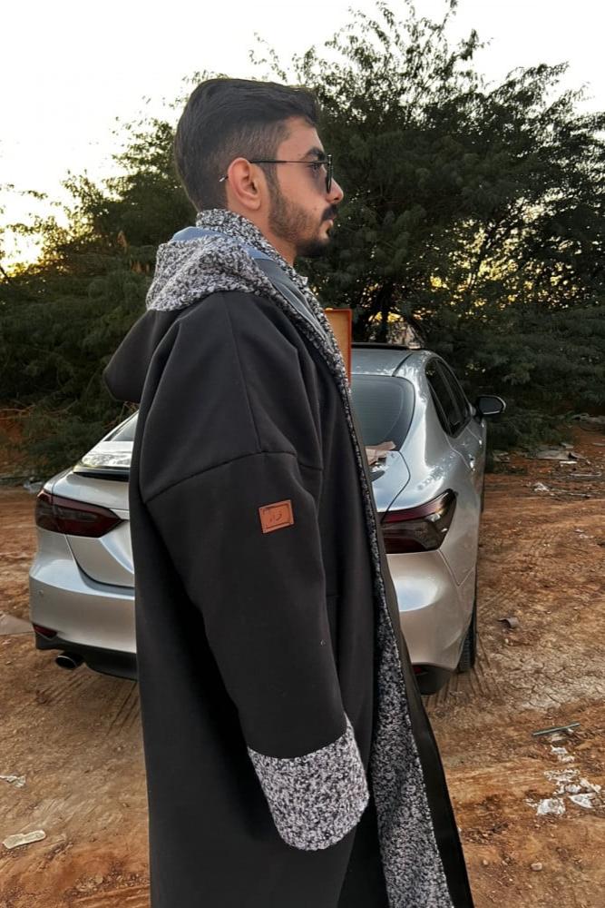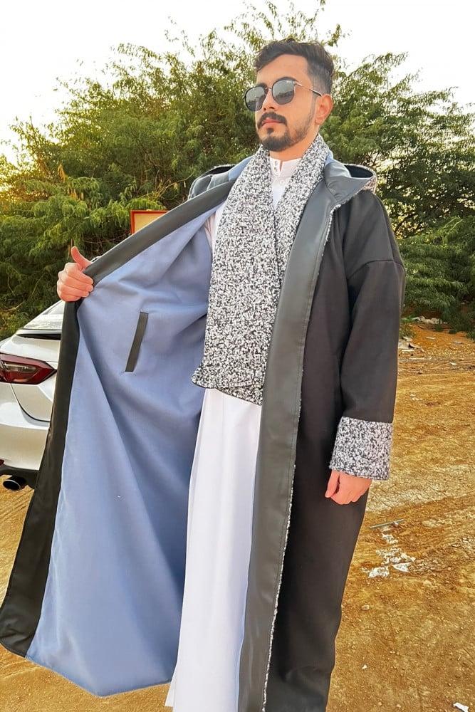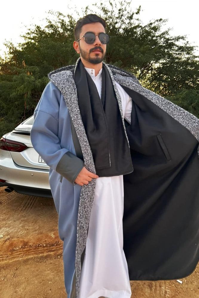 _مصنوعة من قماش الجوخ الفاخر بلوني الأسود والسماوي.