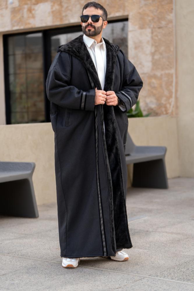 تألّق بإطلالة شتوية فاخرة مع فروة رجالية تجمع بين الأناقة والدفء. يتميز التصميم بقماش خارجي مصنوع من الصوف 100% للحصول على مظهر كلاسيكي ولمسة راقية. الداخلية مبطنة بفرو كثيف لتمنحك دفئاً مثالياً في الأيام الباردة. تصميم حديث يضيف لمسة من التميز والعصرية، مما يجعل هذه الفروة خياراً مثالياً للرجال الباحثين عن الأناقة والراحة.