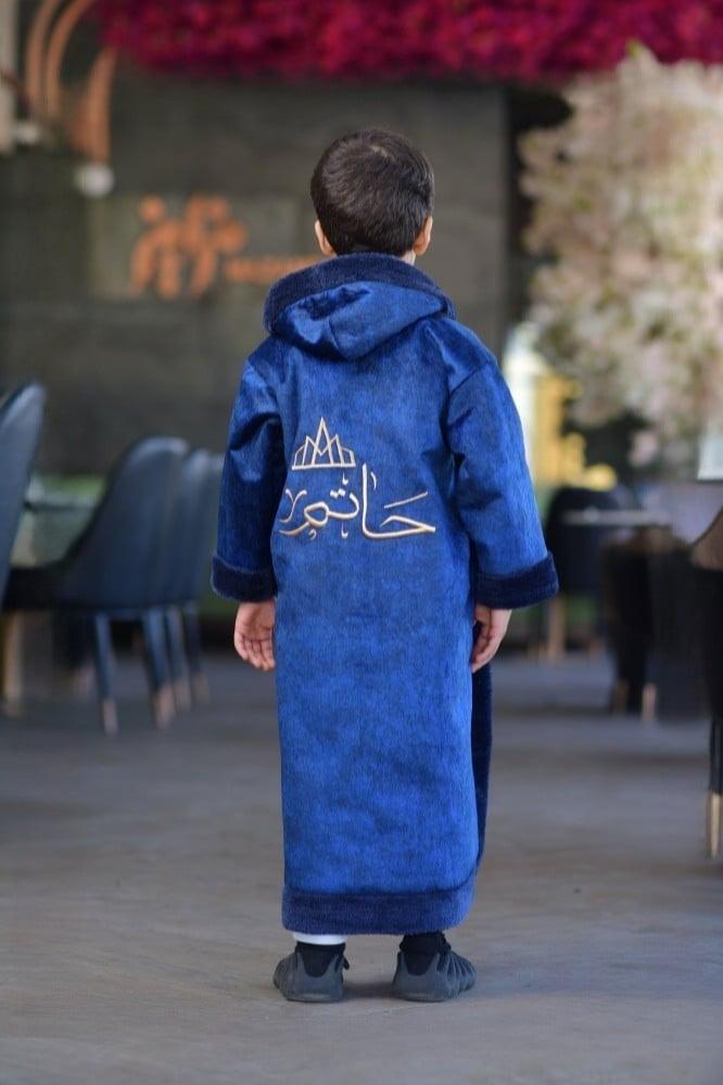فروة شتوية فاخرة للأطفال باللون الأزرق مع اسم مطرز